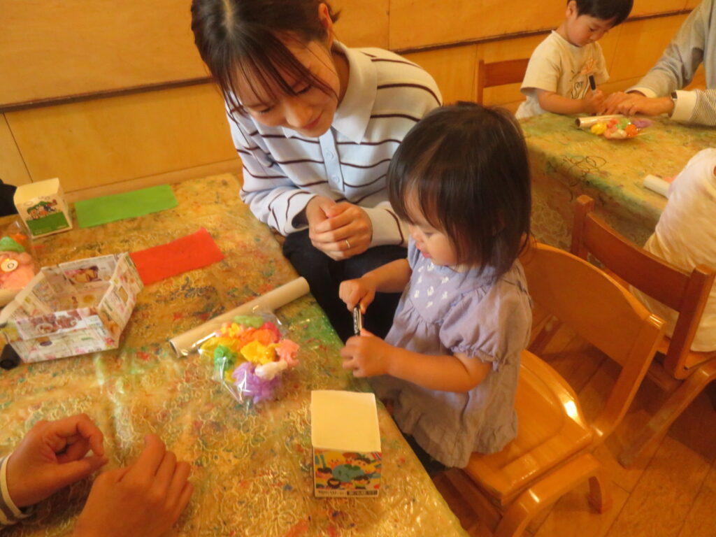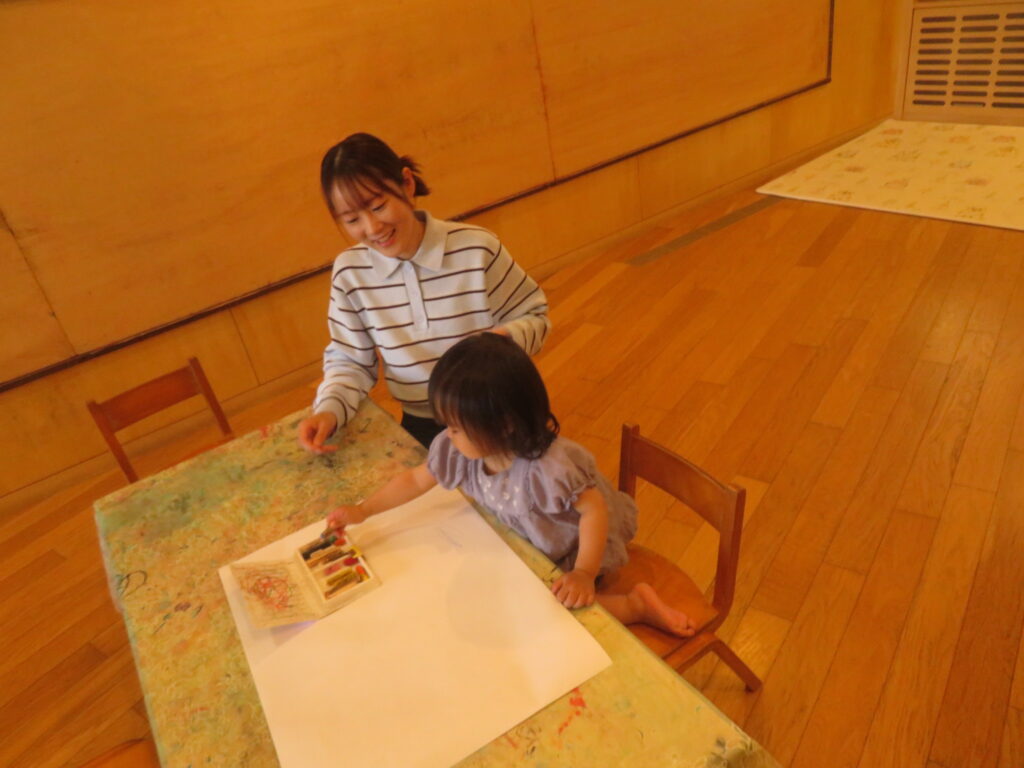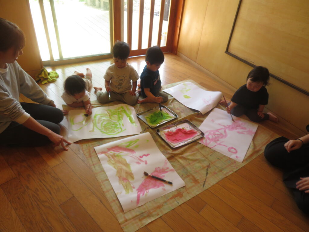 最後は、絵の具、クレヨンで「描き描き~🖌」お絵描きを楽しみました。